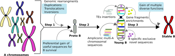 There is no obvious method of accumulation of the Bs in this species. In fact, they are transmitted at a mean of 0.39 in some populations, which is lower than the Mendelian rate of 0.5, and there is a net loss in progenies compared with their parents. Furthermore, their presence in high numbers reduces the fitness of the carriers, and this prompts the question of how they are maintained in nature. The hypothesis that is proposed, based on greenhouse experiments, is that there is differential selection operating at the seedling stage (based on drought tolerance) and that Bs confer some selective advantage in this respect.