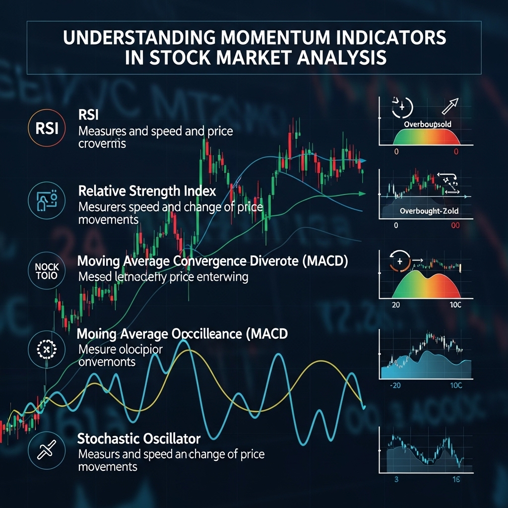 Momentum indicators are technical analysis tools that measure the rate of change of a stock's price over a given period. They help traders and investors identify the strength and sustainability of a trend, as well as potential buy and sell signals. Momentum indicators can be categorized into two main types: trend-following indicators and oscillators. Trend-following indicators, such as moving averages, identify the direction and strength of a trend, while oscillators, such as the Relative Strength Index (RSI), identify overbought and oversold conditions.