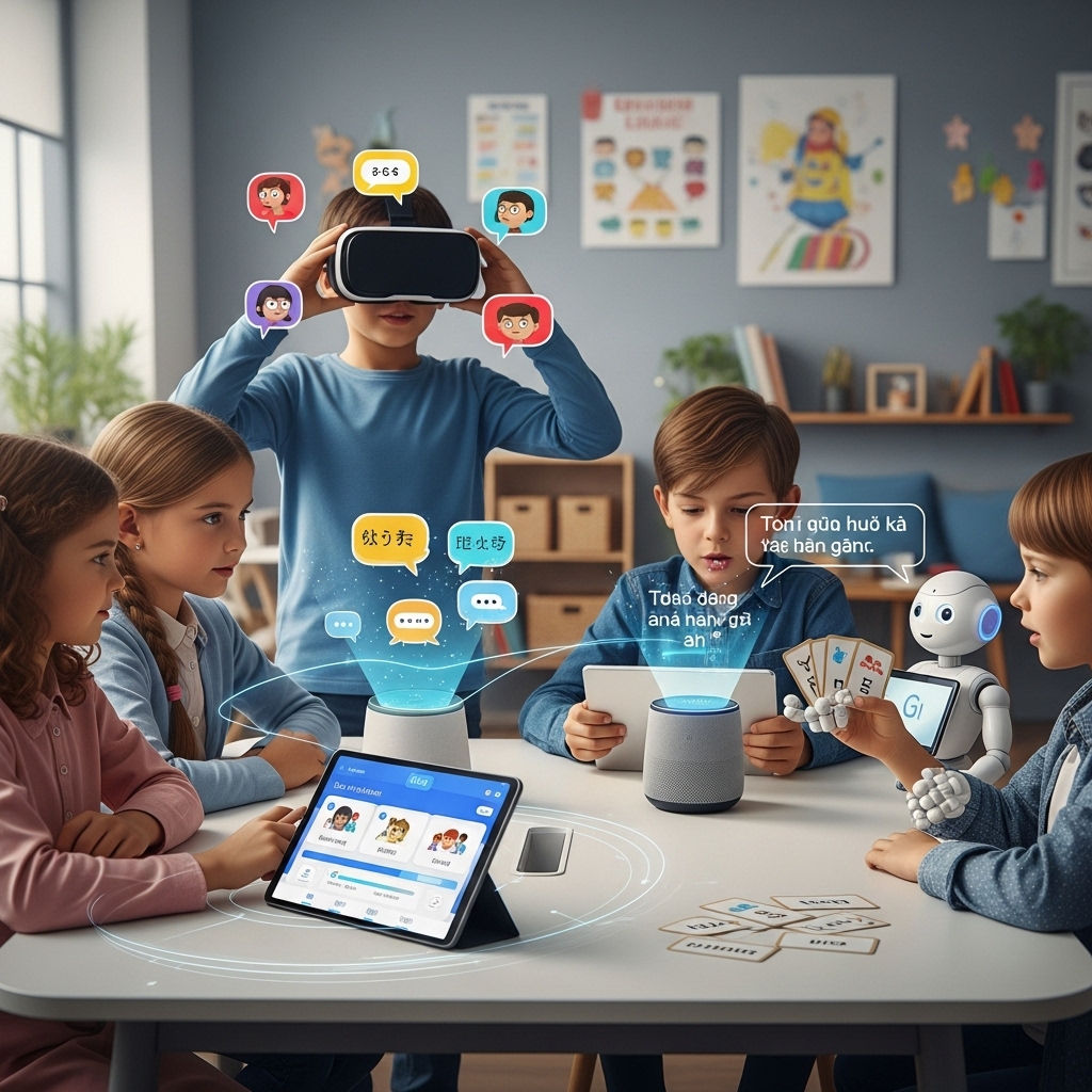 AI has also enabled the creation of interactive and immersive language learning experiences that simulate real-life conversations and scenarios. Virtual reality (VR) and augmented reality (AR) technologies, powered by AI, can transport children to virtual environments where they can practice their language skills in a more engaging and interactive way. For example, AI-driven chatbots can engage children in conversations, using natural language processing (NLP) to understand and respond to their inputs. This interactive approach helps children develop their speaking, listening, and comprehension skills, as they are able to practice their language skills in a more authentic and meaningful way.