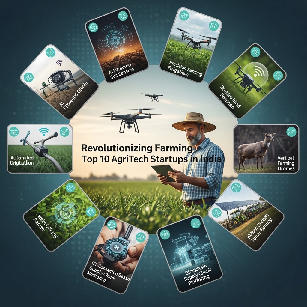 Here are the top 10 AgriTech startups in India that are transforming the farming sector with their innovative solutions. These startups have been selected based on their impact, innovation, and potential to scale. The list includes startups like FarmGuide, which provides personalized farming advice to farmers using AI-powered chatbots; CropIn, which offers a farm-to-fork platform for farmers, suppliers, and buyers; and Gramophone, which provides a farming app that offers real-time advisory services to farmers.