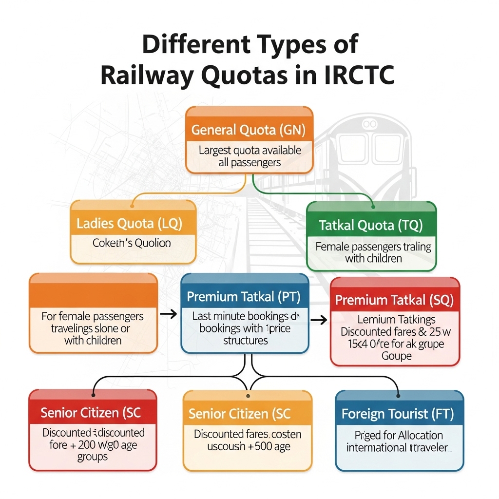 The Indian Railway Catering and Tourism Corporation (IRCTC) is the online ticketing arm of Indian Railways, providing a convenient way for passengers to book their tickets. One of the key aspects of ticket booking is the concept of railway quotas, which determine the availability of seats or berths on a train. In this article, we will delve into the different types of railway quotas in IRCTC, explaining their characteristics, and providing examples to illustrate their application.