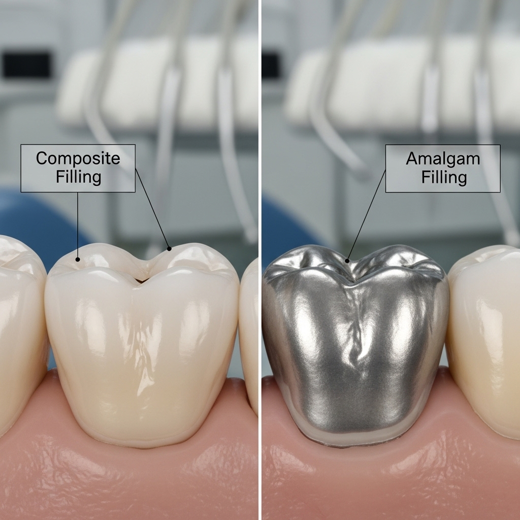 Composite fillings have several advantages over amalgam fillings. One of the main advantages is their aesthetic appeal. Composite fillings can be matched to the color of the surrounding tooth, making them virtually invisible. They are also more versatile than amalgam fillings, and can be used to repair teeth that are cracked or chipped, as well as those that have decay. Additionally, composite fillings are less likely to cause sensitivity or discomfort, as they do not conduct heat or cold in the same way that amalgam fillings do. For example, a patient who has a composite filling in a tooth that is sensitive to temperature changes may find that the sensitivity is reduced or eliminated after the filling is placed.