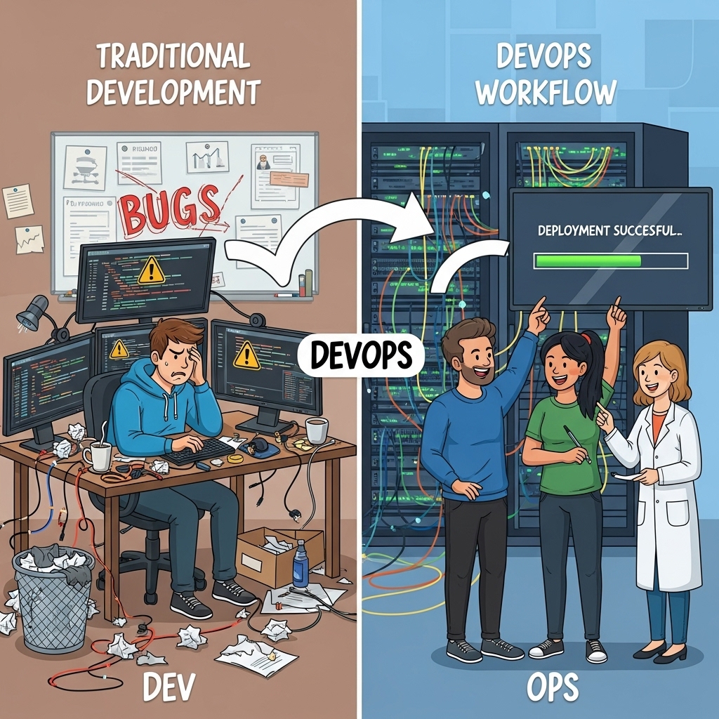 DevOps is a set of practices that combines software development (Dev) and IT operations (Ops) to improve the speed, quality, and reliability of software releases and deployments. It aims to bridge the gap between these two traditionally separate teams and create a culture of collaboration, automation, and continuous improvement. By adopting DevOps, organizations can reduce the time and effort required to develop, test, and deploy software, resulting in faster time-to-market, improved customer satisfaction, and increased competitiveness.