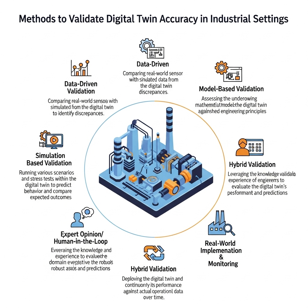 Hybrid validation methods involve combining physical and data-driven validation methods to validate the accuracy of digital twins. This approach involves using physical measurements and data analytics to validate the digital twin's accuracy and identify areas for improvement. For example, in the automotive industry, hybrid validation methods are used to validate the accuracy of digital twins of vehicles, where physical measurements, such as sensor data and test driving, are combined with data analytics and machine learning algorithms to validate the digital twin's accuracy and identify areas for improvement.